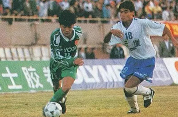 1994年,中国队迎战桑普多利亚,时任前锋的高峰顺利踢进一球。